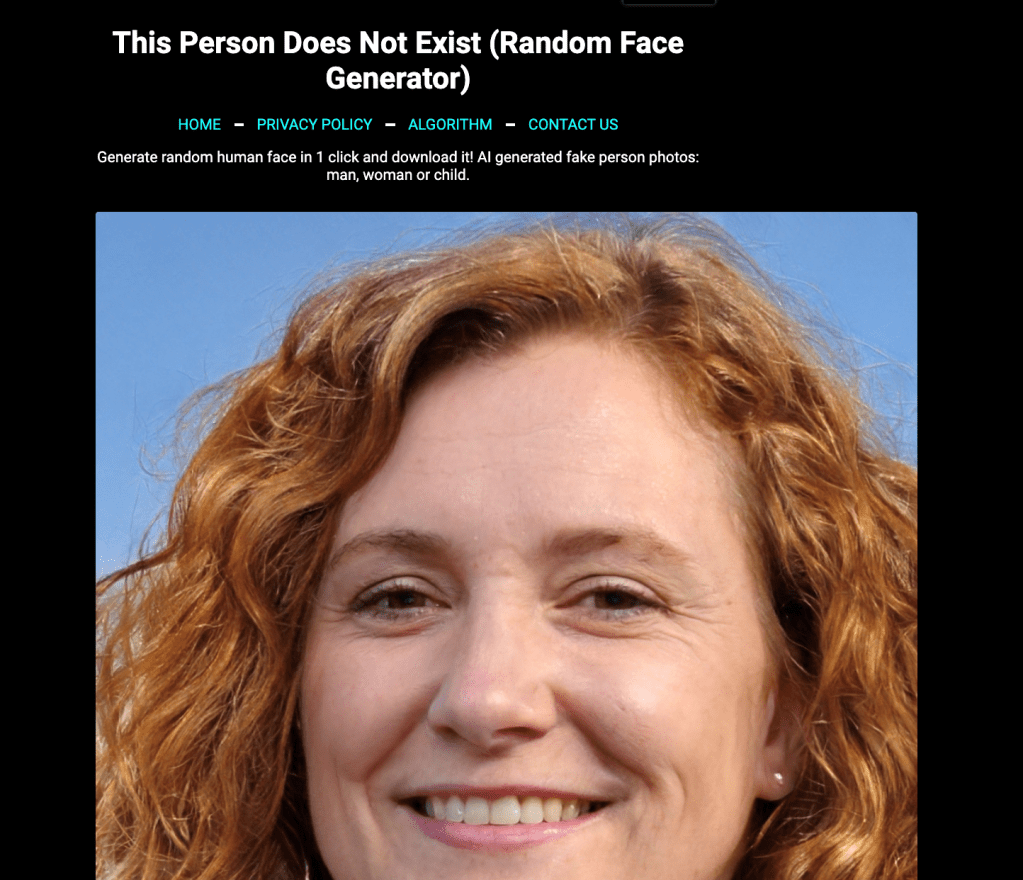 This Person Does Not Exist es una página web que muestra imágenes generadas por inteligencia artificial de personas que no existen en la vida real. Estas imágenes se crean utilizando redes generativas antagónicas (GAN), que aprenden de una base de datos de imágenes de personas reales para generar nuevas imágenes que parezcan reales pero que en realidad no corresponden a ninguna persona real.