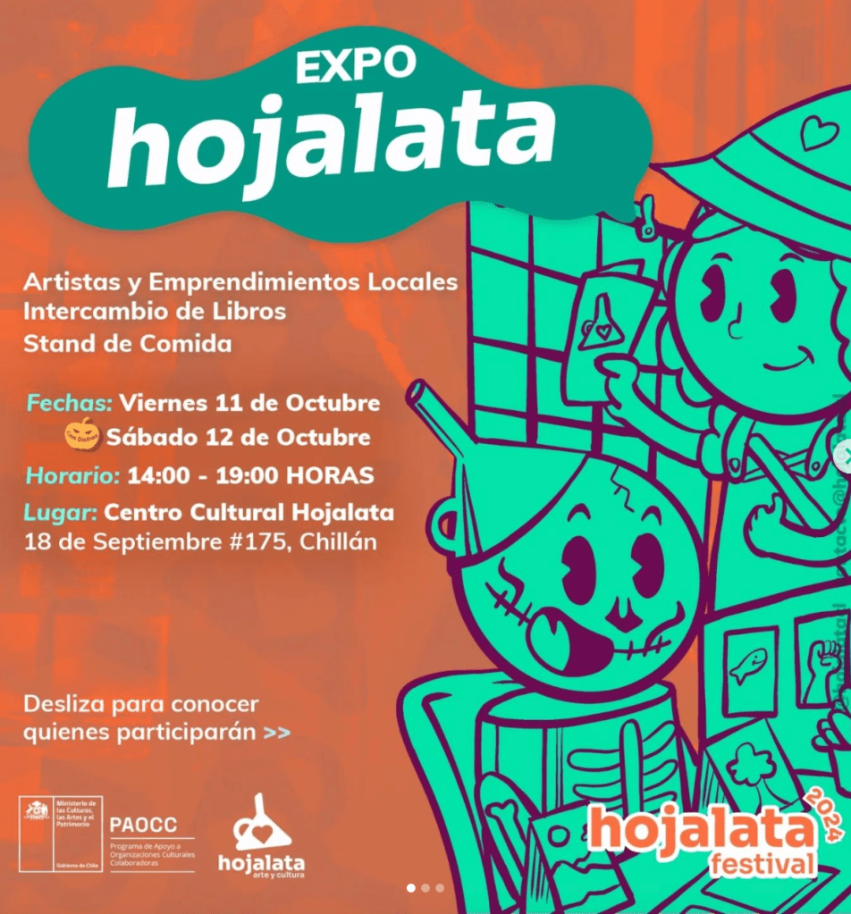 Este mes de octubre, el Centro Cultural Hojalata de Chillán se prepara para la celebración de un magno evento que celebra el arte, la creatividad y la participación cultural: Hojalata Festival en su 4ta versión. Esta iniciativa reúne a artistas, emprendedores locales y el público general en un espacio donde se promueve el acceso equitativo a la cultura y las artes, cumpliendo con la misión de Hojalata Arte & Cultura de generar oportunidades para la participación activa en la escena cultural de la región.