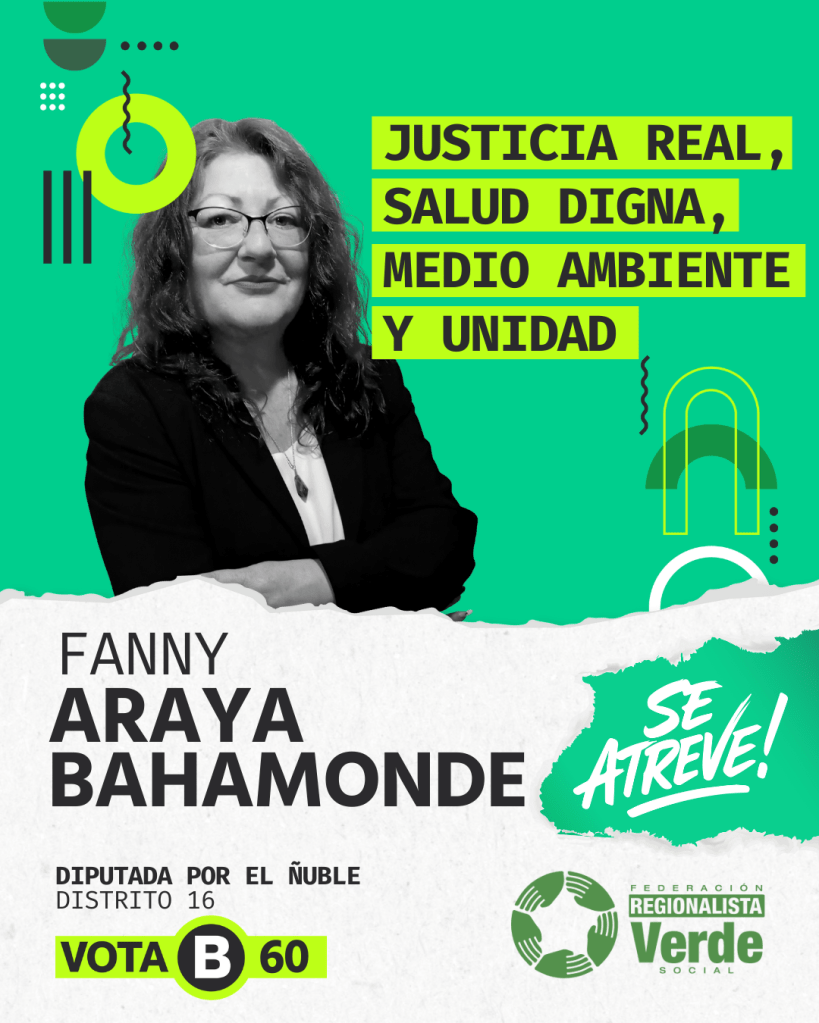 - Con amplia experiencia en gestión social, la candidata plantea fortalecer la autonomía regional, mejorar la salud pública, promover energías limpias y reforzar la seguridad, buscando reducir las brechas sociales y convertir a Ñuble en una región con más oportunidades y desarrollo equitativo.