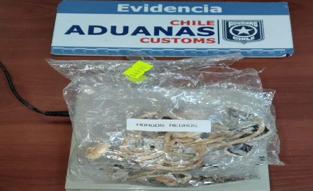 Los equipos de Aduanas de Pino Hachado también detectaron sustancias ilícitas. Primero en los efectos personales de un turista, al interior de una mochila, se encontró una bolsa con hongos negros, que tras las pruebas de campo realizadas con el moderno equipo que analiza trazas arrojó resultado positivo para opioides y hongos alucinógenos, infringiendo la Ley 20.000 de control de drogas. Por instrucción de la Fiscalía Local el sospechoso y la evidencia fueron entregados a Carabineros.